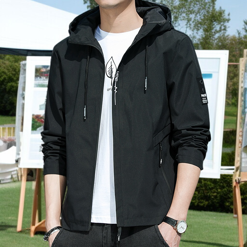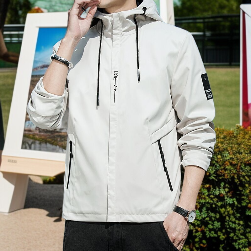 春と秋のジャケットメンズコートフード付き学生ユースカジュアルジャケット