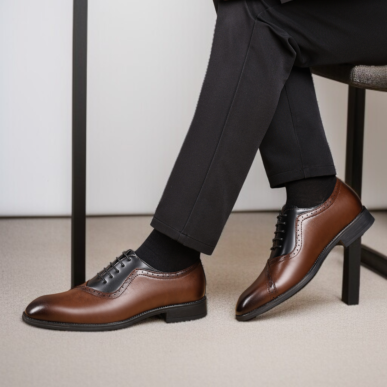 礼服用方头系带皮鞋の高級感ある擦色仕上げ