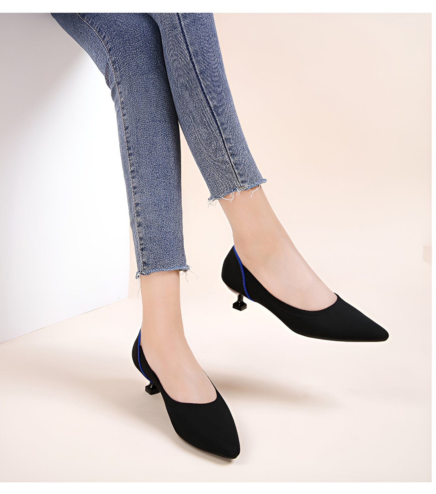 ● ポインテッドトゥとスティレットハイヒールの組み合わせで、女性らしいエレガントなシルエットと美脚効果を実現します。